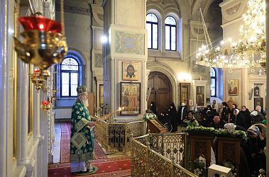 В день праздника Божественную литургию в храме Всех святых Алексеевского монастыря возглавил председатель Синодального отдела по монастырям и монашеству, наместник Донского ставропигиального мужского монастыря митрополит Каширский Феогност.