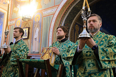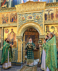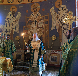 Его Высокопреосвященству сослужили клирики Стефано-Махрищской обители и подворья монастыря.