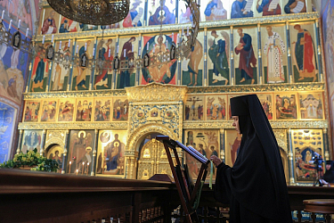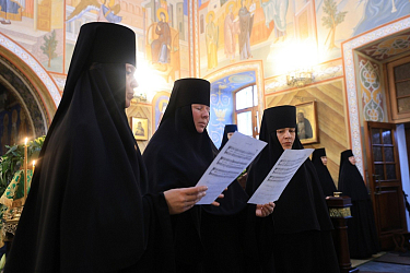По окончании Литургии митрополит Феогност зачитал игумении Елисавете поздравление с днем тезоименитства от Святейшего Патриарха Московского и всея Руси Кирилла.