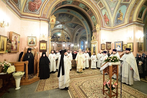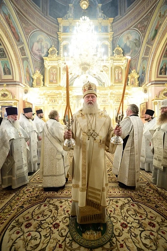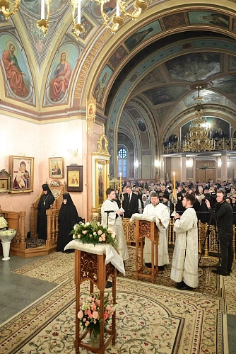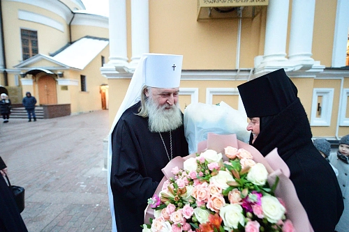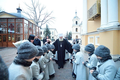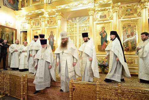 Его Высокопреосвященству сослужили заместитель председателя Синодального отдела по монастырям и монашеству, наместник Саввино-Сторожевского ставропигиального мужского монастыря архимандрит Стефан (Тараканов), клирики обители.