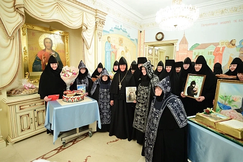 С юности избрав стезю служения Богу и посвятив Ему всю свою жизнь, Вы с неизменной ревностью и самоотвержением стремились исполнять порученные Вам церковные послушания. Вашими неустанными трудами и заботами возрожденная древняя Покровская обитель столицы не только обрела былое благолепие, но и стала одним из почитаемых мест паломничества, привлекающим богомольцев из России и многих стран мира, притекающих к мощам святой праведной старицы Матроны Московской. Отрадно отметить и обширную социальную деятельность монастыря, заботу сестер о молодых воспитанницах приюта милосердия, их образовании и духовно-нравственном возрастании.
