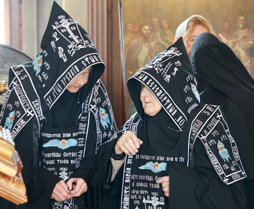 За Литургией молились настоятельница Борисоглебского Аносина монастыря игумения Мария (Солодовникова), настоятельница Акатовского Свято-Троицкого Александро-Невского ставропигиального женского монастыря игумения Антония (Минина), старшая сестра Преображенского скита московского подворья Пюхтицкого Успенского ставропигиального женского монастыря в деревне Юдино Одинцовского района Московской области монахиня Даниила, сестры Успенского скита в Епифани.