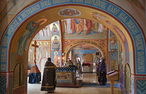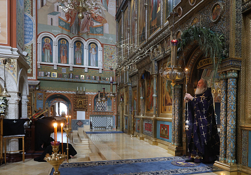 За Божественной литургией Его Высокопреосвященству сослужило духовенство Зачатьевской обители.