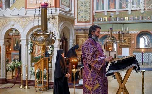 За Литургией молились заместитель председателя Синодального отдела по монастырям и монашеству, настоятельница Зачатьевского ставропигиального монастыря игумения Иулиания (Каледа), настоятельница Никитского монастыря в д. Бывалино Московской области (Балашихинская епархия), сотрудники Синодального отдела по монастырям и монашеству, сестры, прихожане и гости обители.