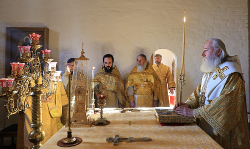 Его Высокопреосвященству сослужило монастырское духовенство.