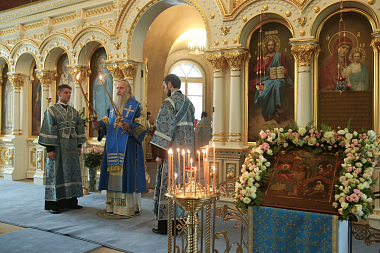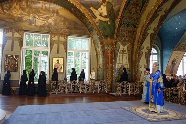 Архиепископ Феогност передал поздравление Святейшего Патриарха Московского и всея Руси Кирилла с престольным праздником обители матушке Игумении, насельницам и прихожанам монастыря.