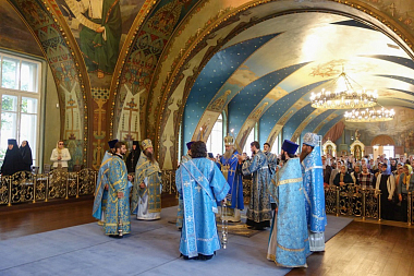 Его Высокопреосвященству сослужили наместник Воскресенского Ново-Иерусалимского ставропигиального мужского монастыря архимандрит Феофилакт (Безукладников), заместитель председателя Синодального отдела по монастырям и монашеству архимандрит Стефан (Тараканов) и духовенство обители.