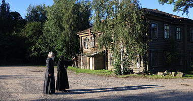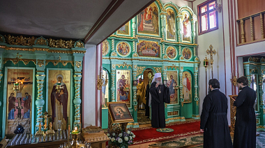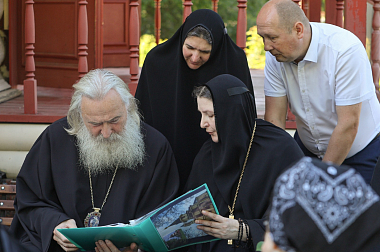 Перед началом богослужения митрополит Феогност осмотрел территорию подворья, которое посетил впервые.