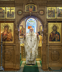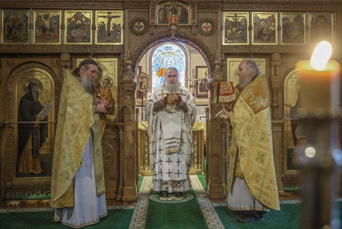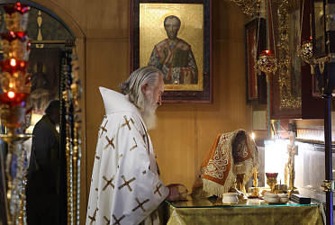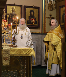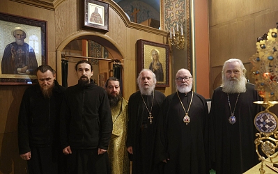 Его Высокопреосвященству сослужили начальник подворья игумен Петр (Романов), братия подворья в священном сане.