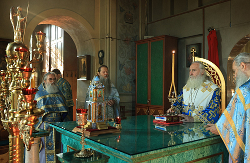 Его Высокопреосвященству сослужило духовенство Алексеевского монастыря: духовник обители протоиерей Артемий Владимиров, протоиерей Сергий Теплов, протоиерей Евгений Каньшин.