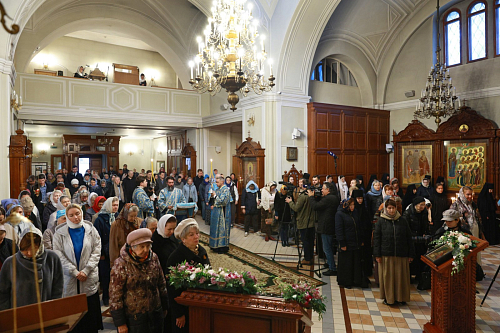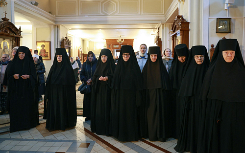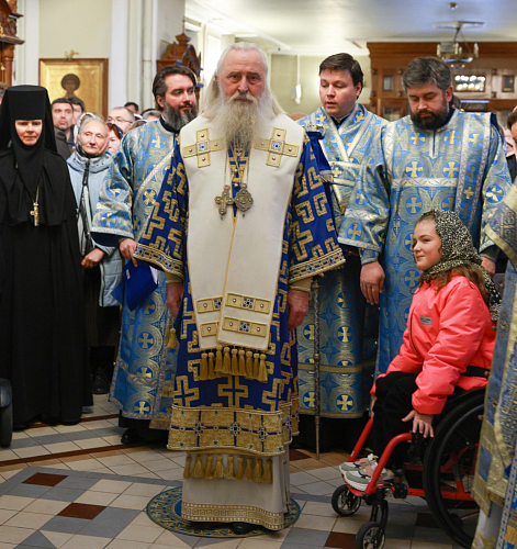За Литургией молились настоятельница игумения Ксения (Чернега) с сестрами обители, председатель Императорского православного палестинского общества С.В. Степашин, сотрудники Правового управления Московской Патриархии, дети инвалиды, прихожане и паломники.