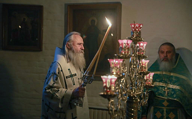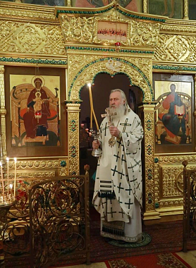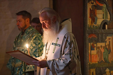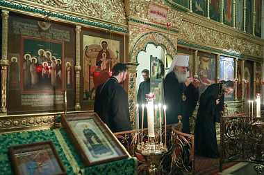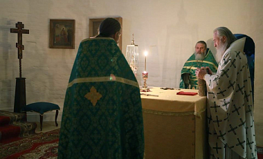 Его Высокопреосвященству сослужило монастырское духовенство.