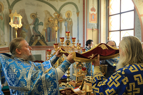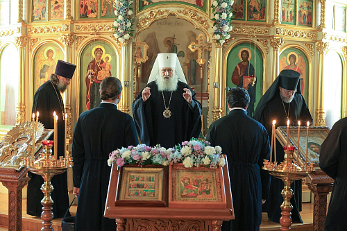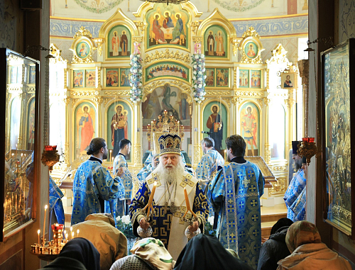 Его Высокопреосвященству сослужило монастырское духовенство.