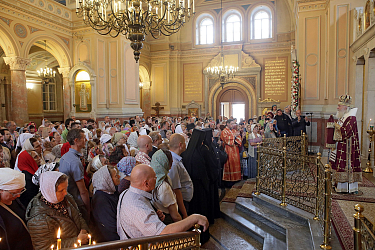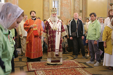 Его Высокопреосвященству сослужили иеромонах Арсений (Джелия), насельник Донского монастыря, иерей Владислав Мишин, настоятель храма святителя Мартина Исповедника в Алексеевской Новой Слободе г. Москвы, председатель комиссии по церковному искусству, архитектуре и реставрации при Епархиальном совете г. Москвы, клирики Иоанно-Предтеченского монастыря.