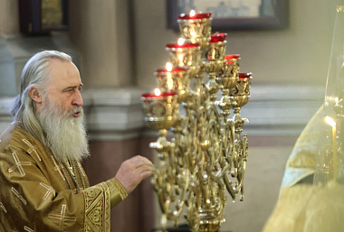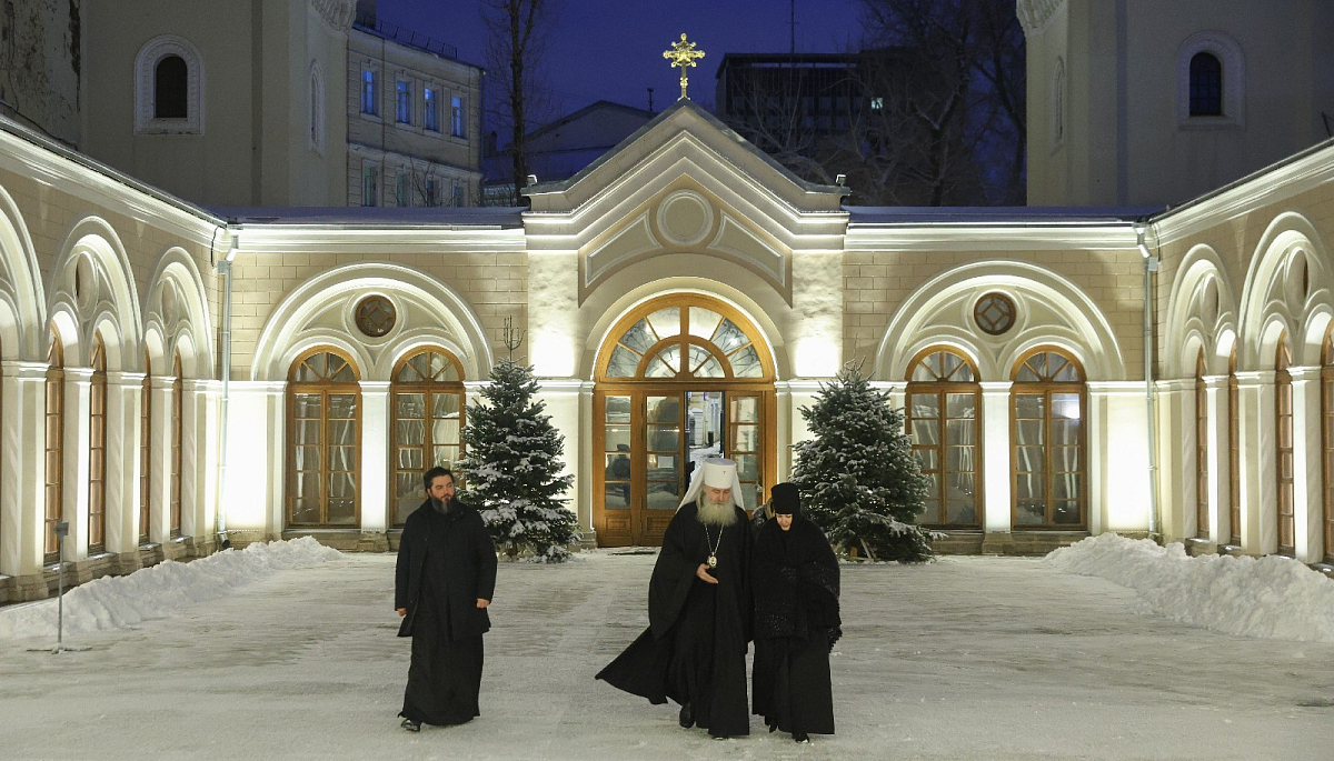 Его Высокопреосвященству сослужили начальник Московского подворья Спасо-Преображенского Валаамского ставропигиального мужского монастыря игумен Петр (Романов), клирики Иоанно-Предтеченского монастыря.