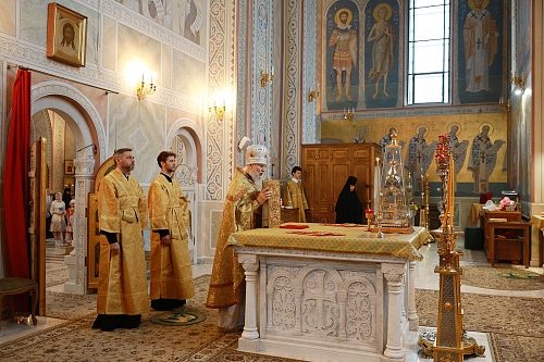 Его Высокопреосвященству сослужили секретарь Патриарха Московского и всея Руси по г. Москве протопресвитер Владимир Диваков, духовенство обители.