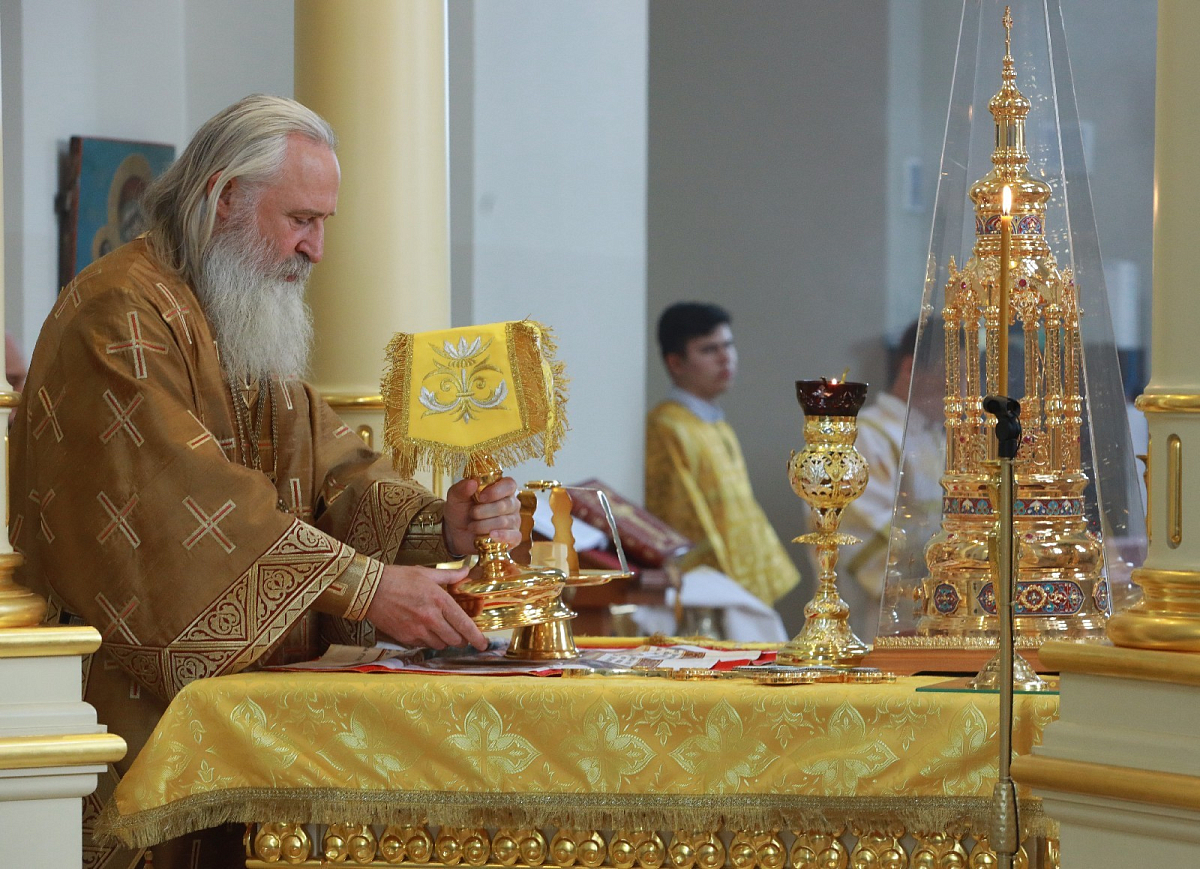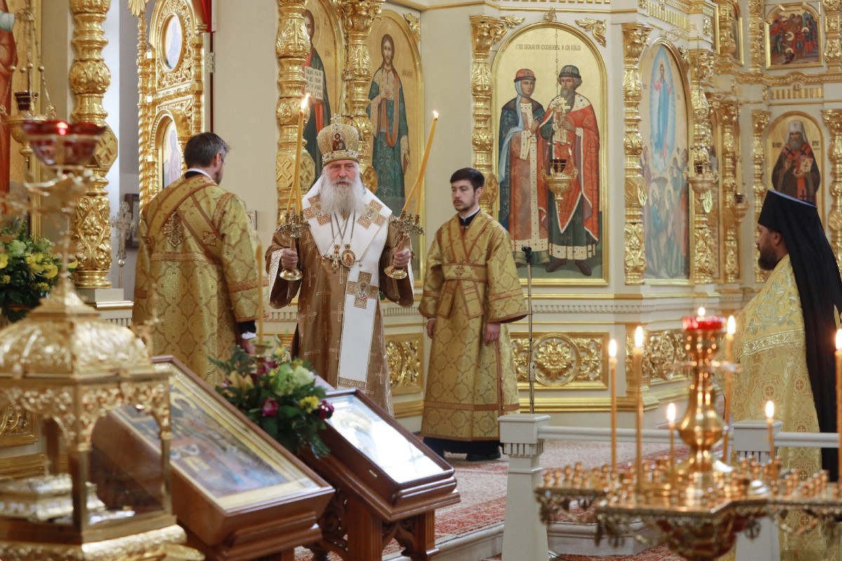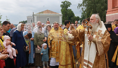 В Вознесенском соборе Его Высокопреосвященству сослужили клирики обители.