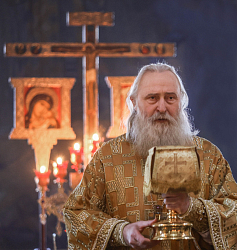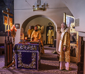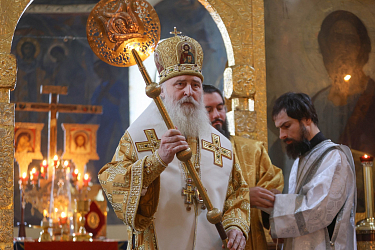 В Покровском соборе обители Его Высокопреосвященству сослужили клирики монастыря.