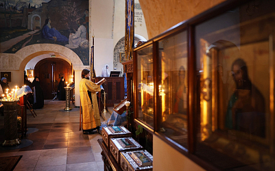 Богослужебные песнопения исполнил хор Марфо-Мариинской обители.