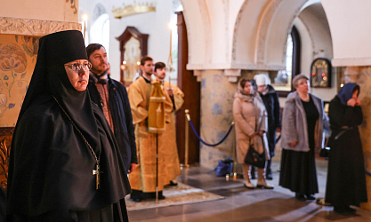 27 февраля 2024 года, в день памяти равноапостольного Кирилла, учителя Словенского, председатель Синодального отдела по монастырям и монашеству наместник Донского ставропигиального мужского монастыря митрополит Каширский Феогност совершил Божественную литургию в ставропигиальном женском монастыре – Марфо-Мариинской обители милосердия.