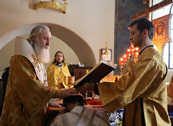 За Литургией митрополит Феогност рукоположил в сан диакона клирика Марфо-Мариинской обители Александра Агеева.