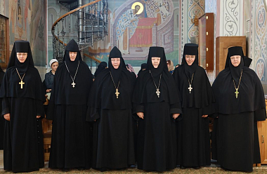 Поздравить настоятельницу Покровского Хотькова монастыря игумению Олимпиаду (Баранову) и сестер приехали: настоятельница Борисоглебского Аносина ставропигиального монастыря игумения Мария (Солодовникова), настоятельница Казанской Амвросиевской ставропигиальной женской пустыни игумения Сергия (Щербакова), настоятельница Свято-Троицкого Стефано-Махрищского ставропигиального монастыря игумения Елисавета (Жегалова), настоятельница Каширского Никитского монастыря игумения Магдалина (Чекулаева), сестры обителей.