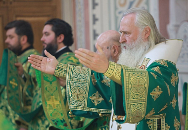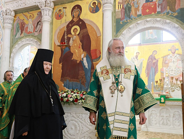 Его Высокопреосвященству сослужили клирики монастыря и духовенство города Москвы.