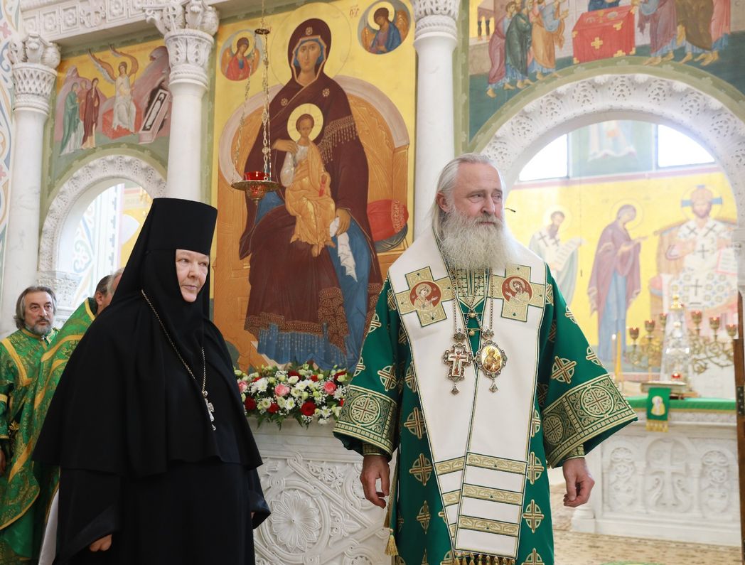 По окончании Литургии митрополит Феогност зачитал поздравление Святейшего Патриарха Кирилла по случаю 30-летия возрождения монашеской жизни в Покровском Хотькове монастыре.