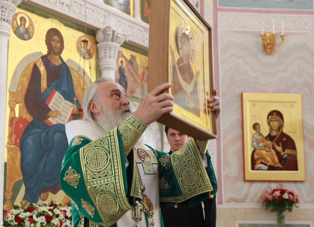 В ответном слове игумения Олимпиада выразила благодарность Святейшему Патриарху Кириллу и вручила икону Покрова Божией Матери владыке Феогносту.