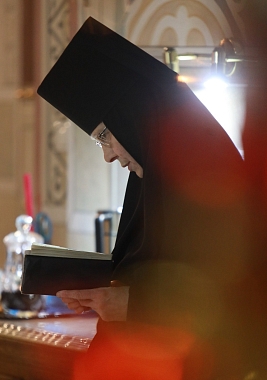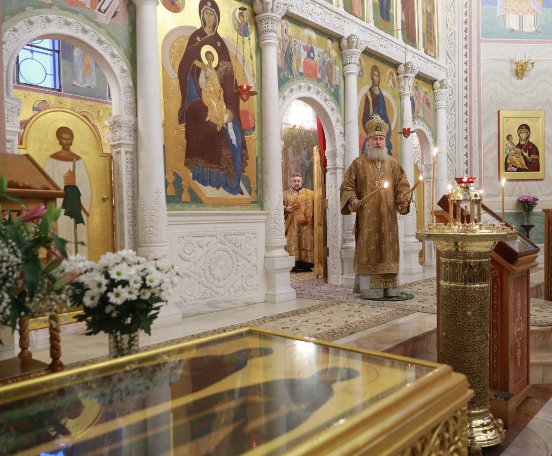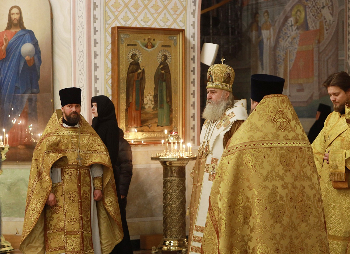 Его Высокопреосвященству сослужило духовенство обители.