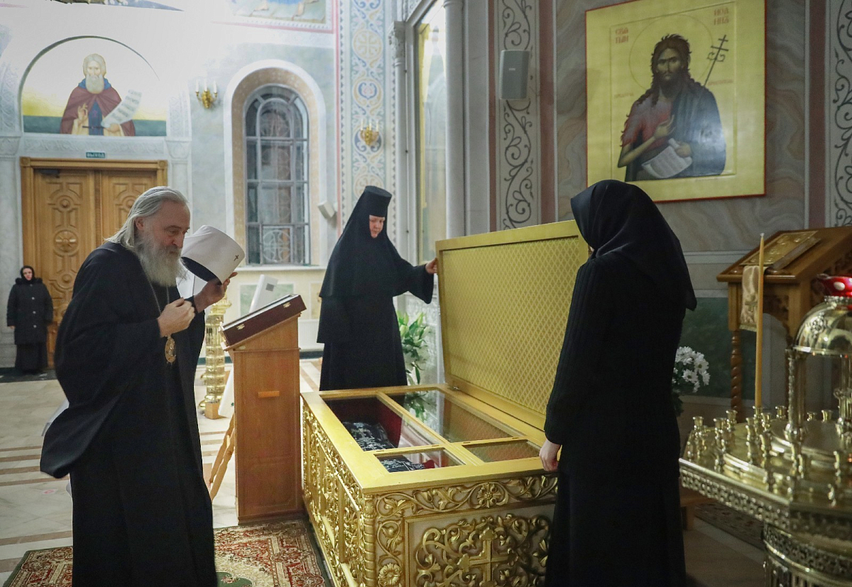 5 января 2022 года, в день памяти мучеников Критских, председатель Синодального отдела по монастырям и монашеству, наместник Донского ставропигиального мужского монастыря митрополит Каширский Феогност совершил Божественную литургию в Покровском Хотькове ставропигиальном женском монастыре.