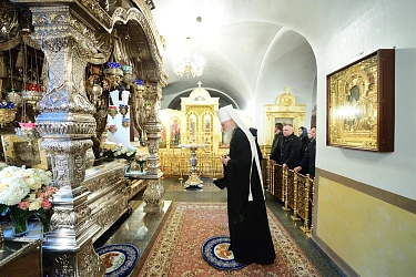 По прибытии в обитель митрополит Феогност поклонился честным мощам святой праведной блаженной Матроны Московской.
