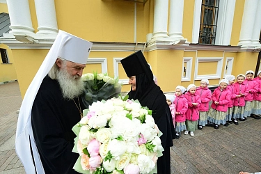По окончании Литургии митрополит Феогност огласил Патриаршее поздравление игумении Феофании с 60-летием со дня рождения.