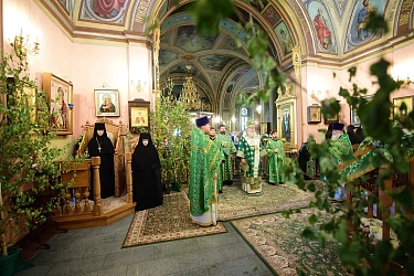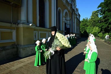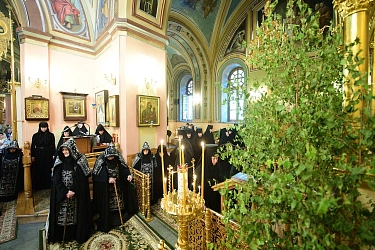За богослужением молились настоятельница монастыря игумения Феофания (Мискина) с сестрами, воспитанницы монастырского детского приюта, прихожане и паломники.