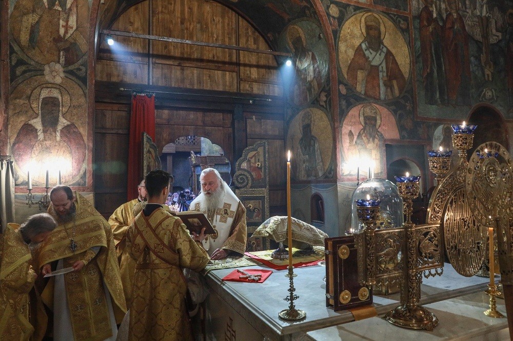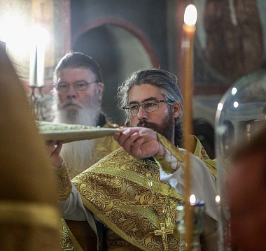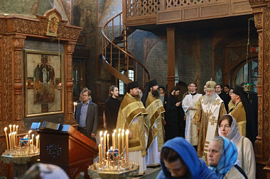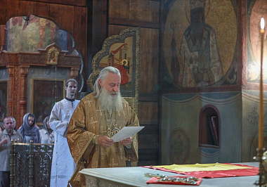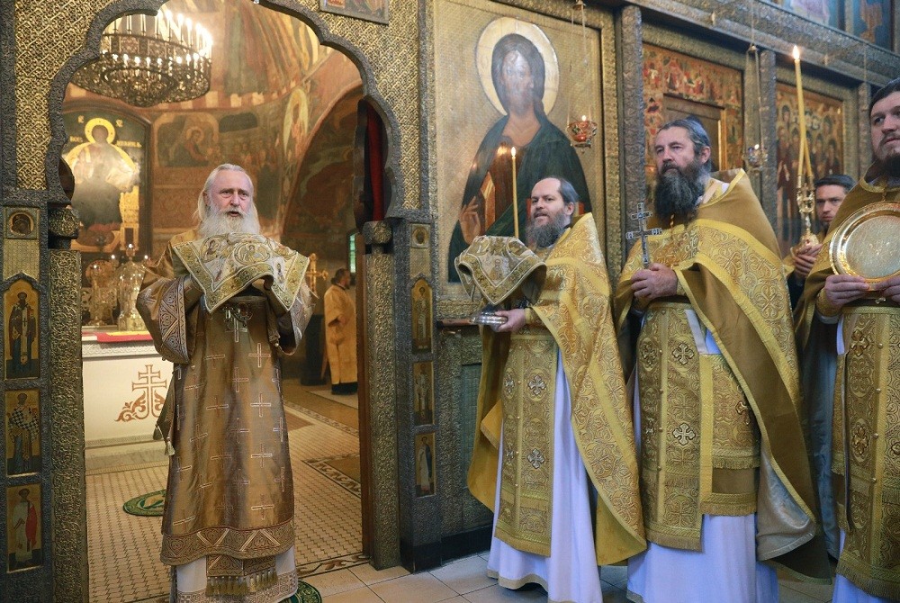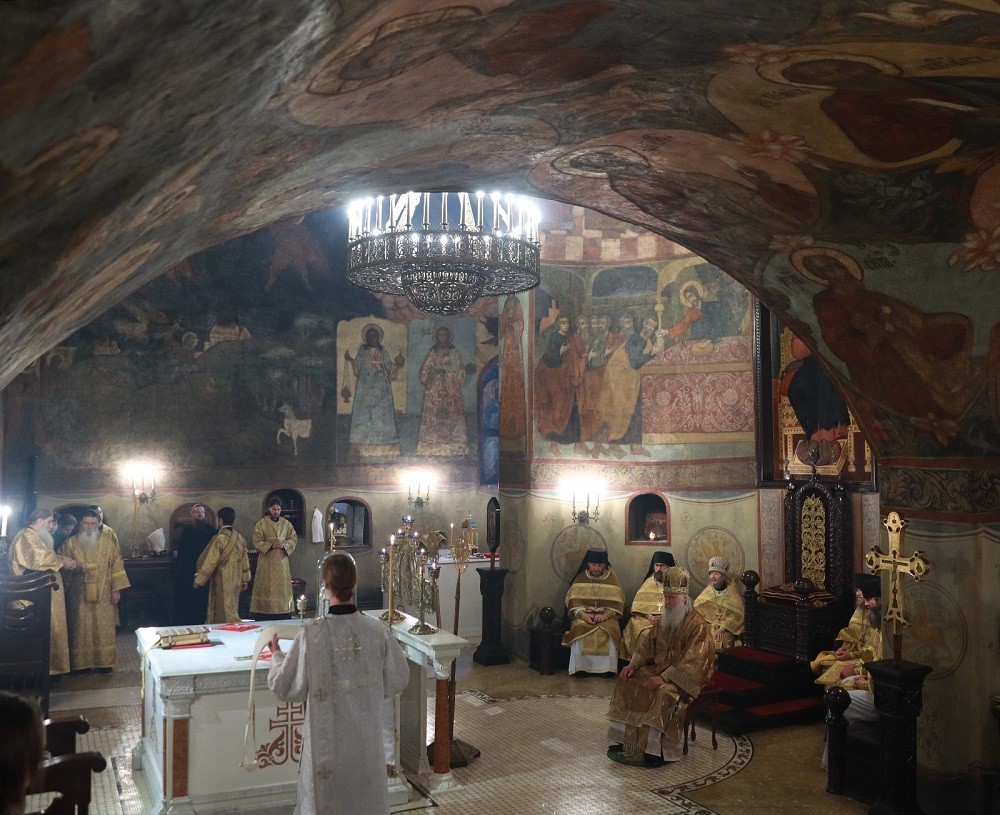 Его Высокопреосвященству сослужили наместник монастыря иеромонах Иоанн (Лудищев), архимандрит Иов (Гумеров), иеромонах Лука (Ауле), иеромонах Ириней (Пиковский), иеромонах Никита (Вдовин), иеромонах Кирилл (Попов), иеромонах Агафангел (Давлатов), диакон Богдан Мошура, иеродиакон Феофан (Бортников), иеродиакон Савва (Салюк).