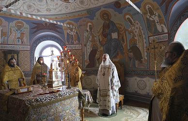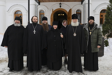 Его Высокопреосвященству сослужили заместитель председателя Синодального отдела по монастырям и монашеству архимандрит Стефан (Тараканов), клирик храма во имя иконы «Всех Скорбящих Радосте» г. Москвы игумен Филарет (Тамбовский), клирики Стефано-Махрищской обители и подворья монастыря.
