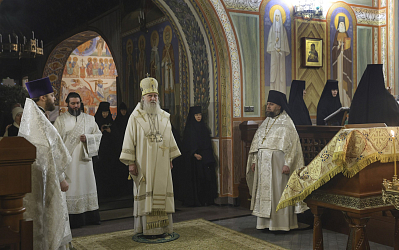 16 января 2024 года, в день памяти святого пророка Малахии и мученика Гордия, председатель Синодального отдела по монастырям и монашеству, наместник Донского ставропигиального мужского монастыря митрополит Каширский Феогност совершил Божественную литургию в Троицком храме Свято-Троицкого Стефано-Махрищского ставропигиального женского монастыря.
