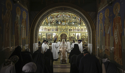 Богослужебные песнопения исполнил сестринский хор и мужской хор храма Живоначальной Троицы в Останкине г. Москвы.