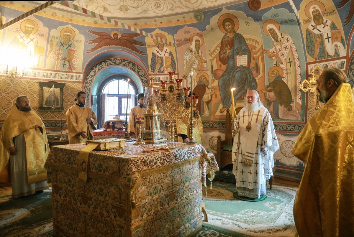Его Высокопреосвященству сослужили клирики Стефано-Махрищского монастыря, гости обители в священном сане.