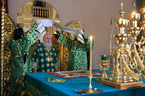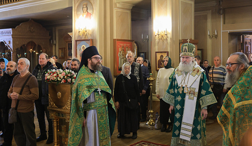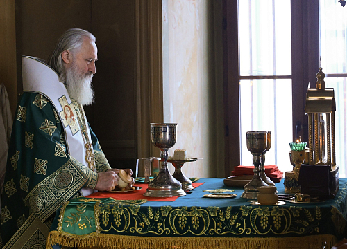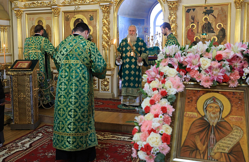 По окончании богослужения было совершено славление перед иконой преподобного Зосимы Верховского. Затем митрополит Феогност произнес проповедь.