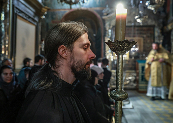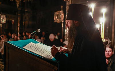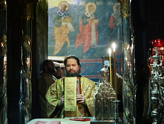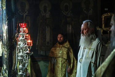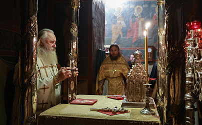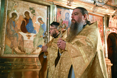 Богослужебные песнопения исполнил хор Троицкого собора Лавры.