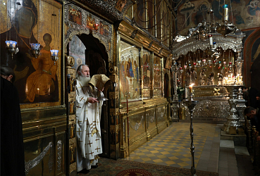 29 ноября 2025 года, в день памяти апостола и евангелиста Матфея, председатель Синодального отдела по монастырям и монашеству, наместник Донского ставропигиального мужского монастыря митрополит Каширский Феогност совершил Божественную литургию в Троицком соборе Свято-Троицкой Сергиевой лавры.