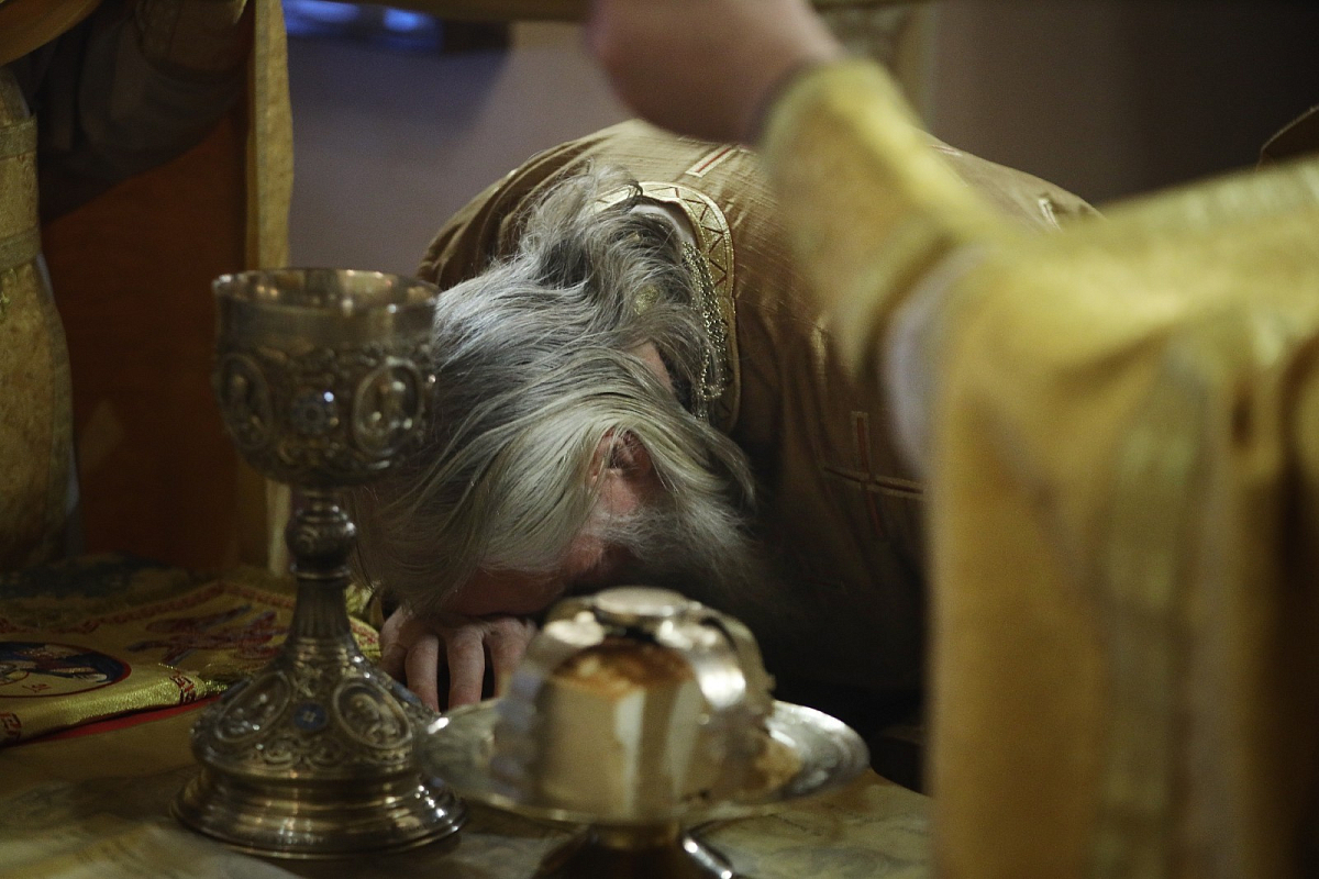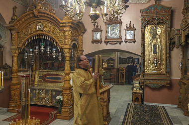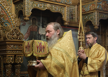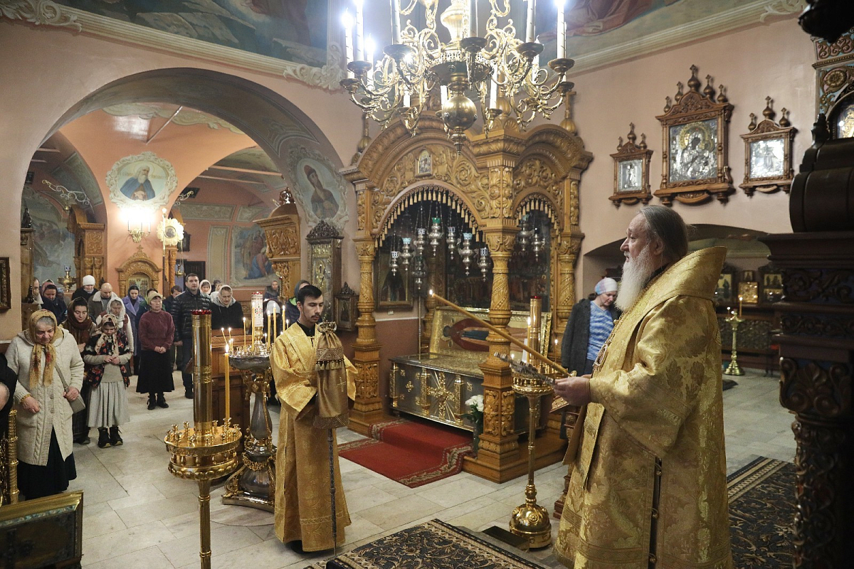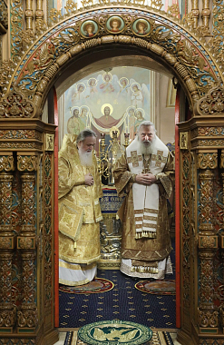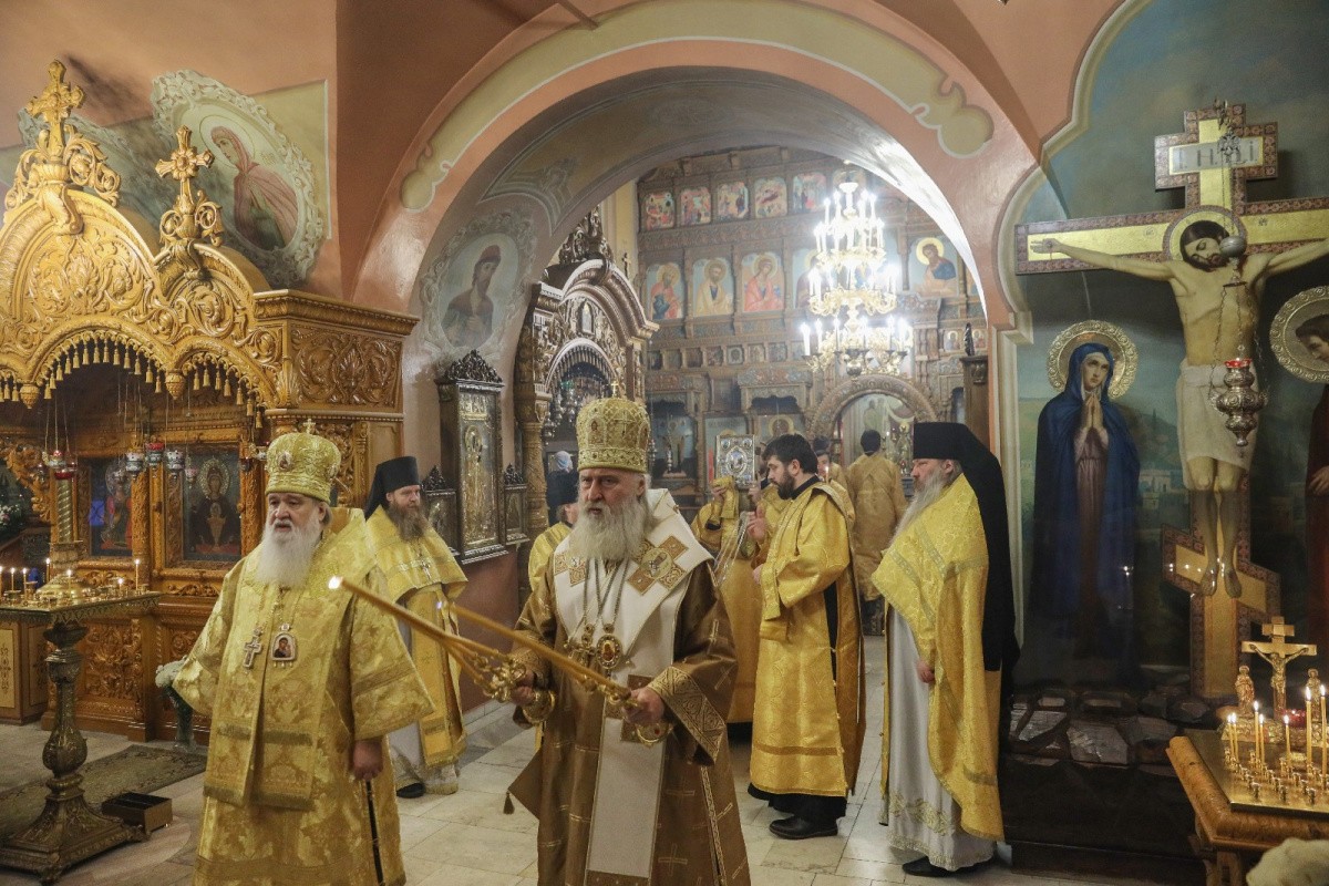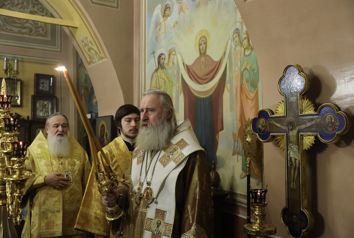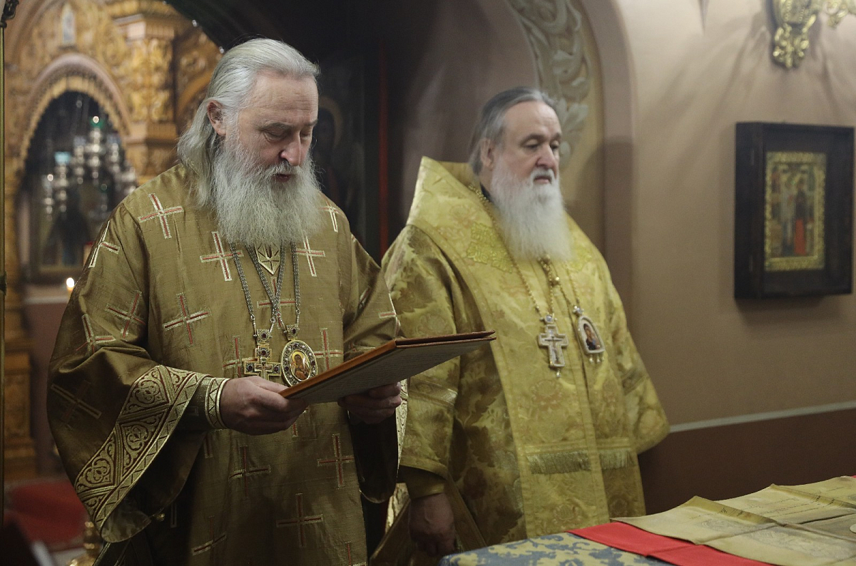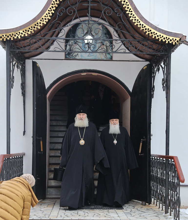Его Высокопреосвященству сослужили наместник Высоцкой обители епископ Серпуховской Роман и братия монастыря в священном сане.