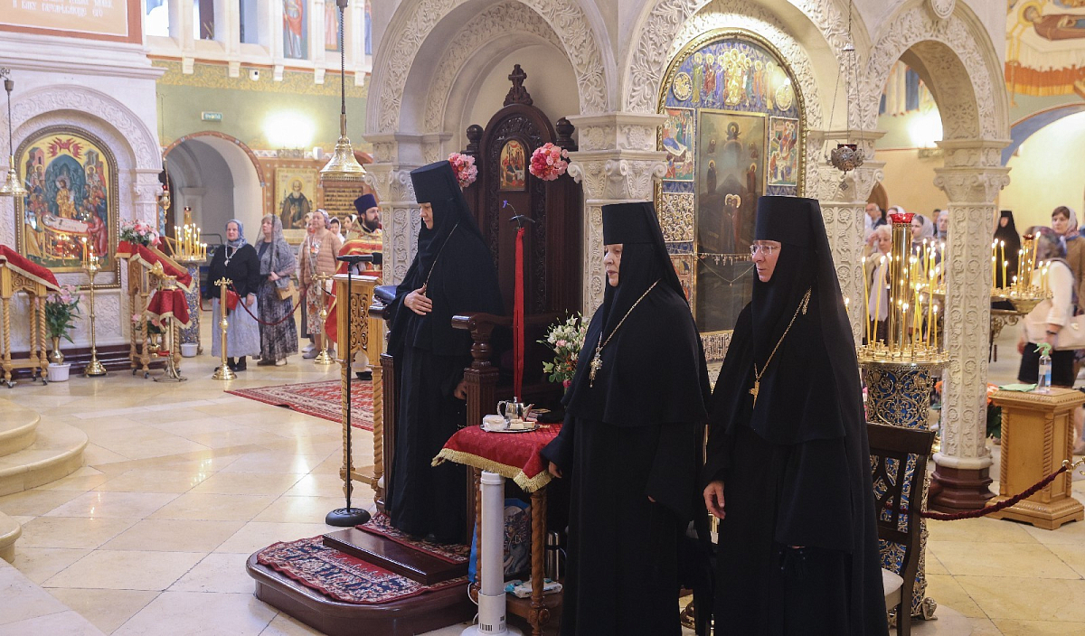 За Литургией молились заместитель председателя Синодального отдела по монастырям и монашеству, настоятельница Зачатьевского ставропигиального монастыря игумения Иулиания, настоятельница Богородице-Рождественского ставропигиального монастыря игумения Викторина (Перминова), настоятельница Никитского монастыря Балашихинской епархии игумения Капитолина (Филиппенко), прихожане и гости обители.