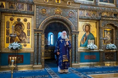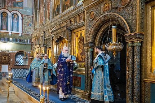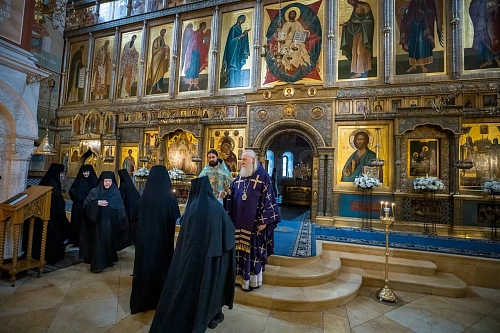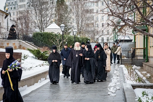Его Высокопреосвященству сослужили монастырское духовенство и клирики Москвы.