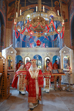 Его Высокопреосвященству сослужило монастырское духовенство.