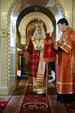 Его Высокопреосвященству сослужили старший священник и духовник обители протоиерей Артемий Владимиров, клирики монастыря.