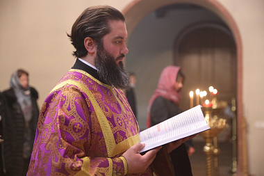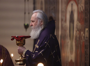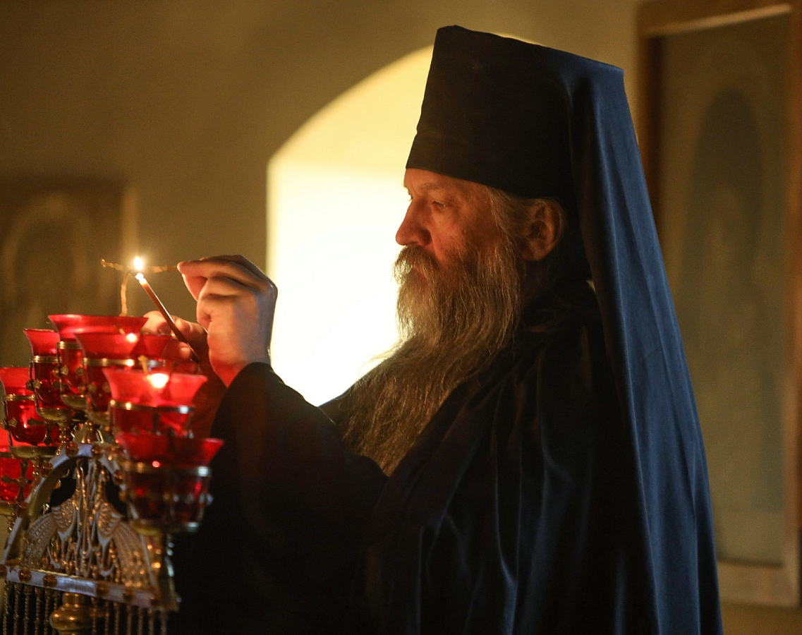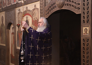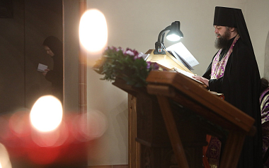 За Литургией Его Высокопреосвященству сослужили наместник Андреевского монастыря игумен Дионисий (Шленов) с братией обители в священном сане.
