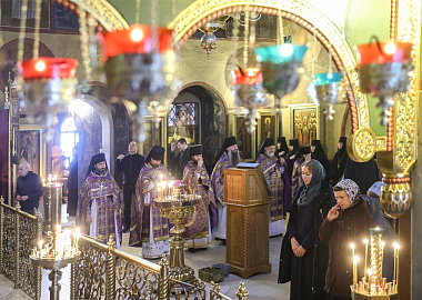 За богослужением молились наместники, игумены и игумении ставропигиальных и епархиальных монастырей, члены Коллегии Синодального отдела по монастырям и монашеству.
