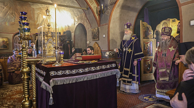 Его Высокопреосвященству сослужили епископ Солнечногорский Алексий, наместник Данилова ставропигиального мужского монастыря, братия обители в священном сане.